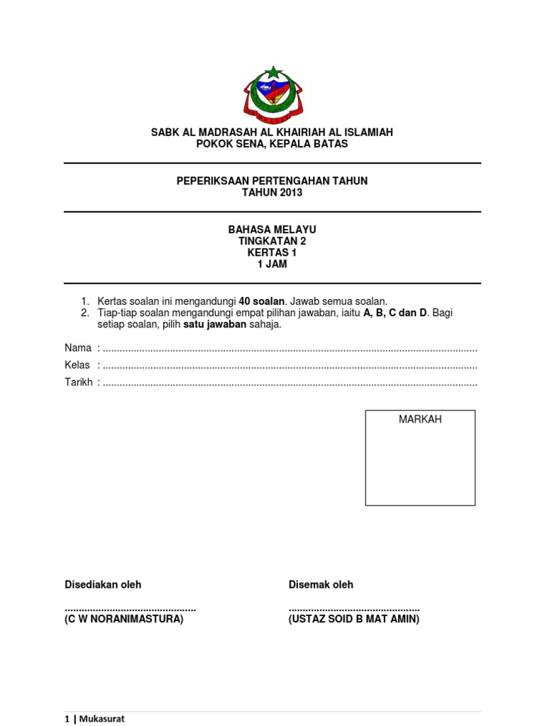 Jadual spesifikasi item peperiksaan awal tahun negeri perak 2016 mata pelajaran :bahasa melayu kertas 2 pengetahuan. Unit peperiksaan dan penilaian smk sungai karangan. Bahasa melayu kertas 2 upsr. Jika para pelajar memandang enteng terhadap mata pelajaran ini, amat sukar untuk anda memperoleh a+ dalam spm kelak. Mempelajari bahasa melayu tidak semudah yang disangkakan. Soalan bocor ramalan bahasa melayu spm 2021 l analisis bm kertas 2 komsas tatabahasa novel. View more powerpoint from cikgu paklong. Before that, i think most of you will face one common problem — running out of time when. Posted by sk taman daya 2 at 9:47 pm. Bahasa melayu tahap 1 kata adjektif. Jawapan bagi soalan 2(b), soalan 2(c), soalan 2(d) dan soalan 4. Check out this slideshare presentation Bm spm kertas 2 soalan 1:
