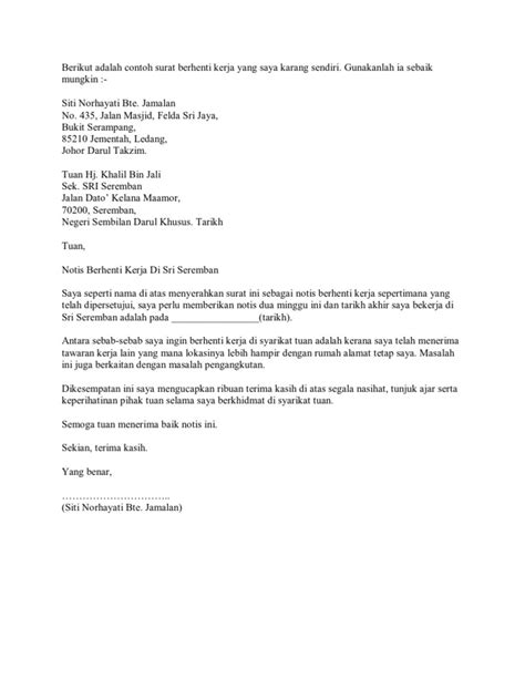 Contoh surat berhenti kerja kilang 24 jam surat menuharga com.
