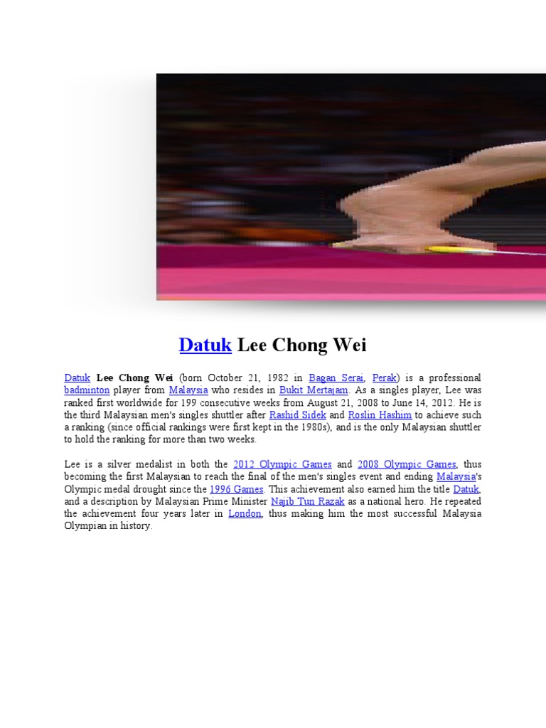 Related : Latar Belakang Lee Chong Wei / Lee Chong Wei Wikipedia / Semoga tuah menyebelahi lee chong wei kali ini..