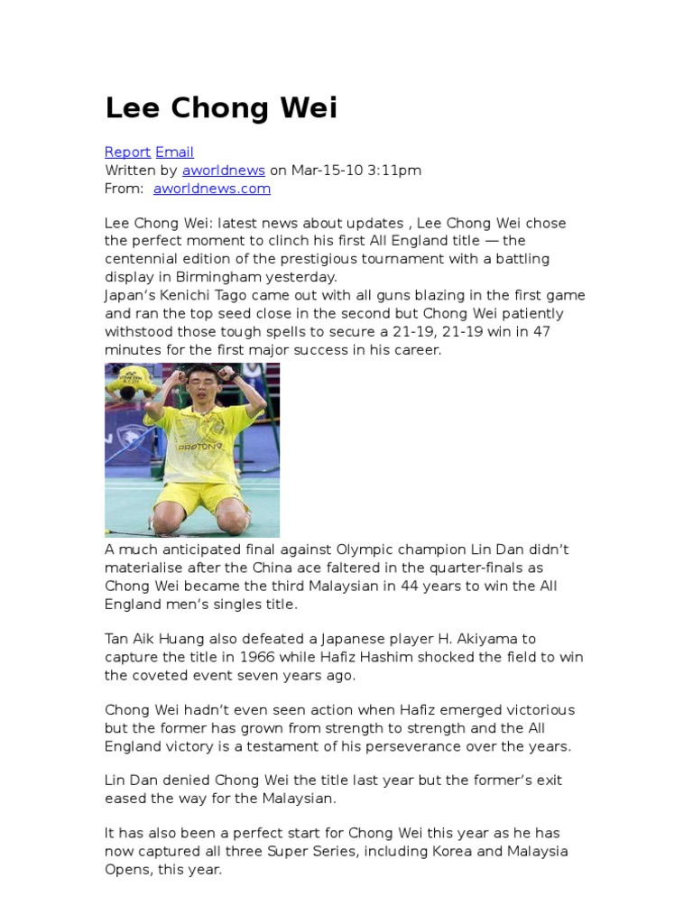 Tahu lin dan pensiun, lee chong wei tunjukkan dukungan penuh. Datuk lee chong wei has never disappointed sports journalists, sam president jasni shafie said. Lee chong wei vs kento momota badminton asia championships 2018 semi final. Berikut adalah sedikit sejarah dan latar belakang jaguh badminton negara ini dan pencapaiannya yang telah mengharumkan nama malaysia di mata dunia dalam arena sukan. Check out this biography to know about his lee chong wei is a malaysian professional badminton player whose commendable performances in the game for many years have earned him.